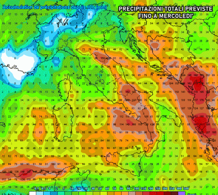 Successivamente la massa fredda polare si dirigerà tra il centro e il sud Italia e qui persisterà fino ad inizio prossima settimana determinando una lunga fase perturbata. Le piogge saranno frequenti e localmente forti, specie sui settori tirrenici e a ridosso di colline e montagne. Davvero notevoli gli accumuli di pioggia previsti fino a metà prossima settimana!