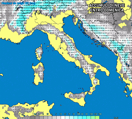 Ovviamente ci sarà anche la neve, probabilmente fino in bassa collina su Marche, Abruzzo, Molise e fino in collina (circa 500 metri) su Campania, Puglia, Basilicata, Calabria settentrionale.
