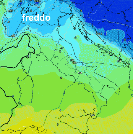 Le temperature in pianura caleranno nei valori massimi di almeno 7-9°C al nord, 4-5°C al centro, mentre resteranno più o meno invariate al sud, non coinvolto direttamente da questa circolazione fredda ma pronto a riceverne gli effetti a livello di instabilità atmosferica.