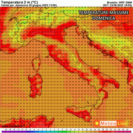 Lunedì 26 Giugno: fresco di notte e all’alba, caldo nella norma di giorno. Sereno ovunque, venti di maestrale sul basso Adritico.