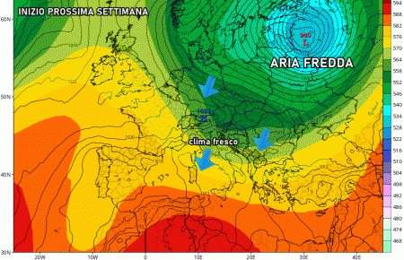 La prossima settimana si prospetta molto fresca, con temperature fino a 4-5°C sotto le medie del periodo, ed anche instabile. Le regioni del centro e del sud saranno quelle più esposte alle nubi e agli acquazzoni.