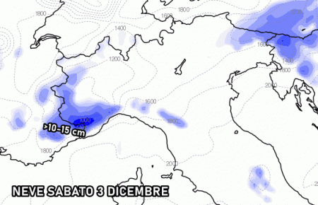 Sabato 3 dicembre: ondata di maltempo al nord e medio-alto Tirreno per l’arrivo di una perturbazione da ovest. Fenomeni prevalentemente deboli o moderati. Nevicate sulle Alpi a medio-alte quote, fino in collina su basso Piemonte ed entroterra ligure.