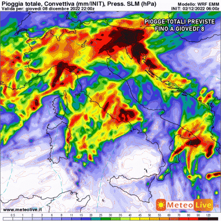 Venerdì 9 dicembre: breve pausa al mattino al nord, persistono le piogge al centro. Entro sera possibile nuovo diffuso peggioramento.