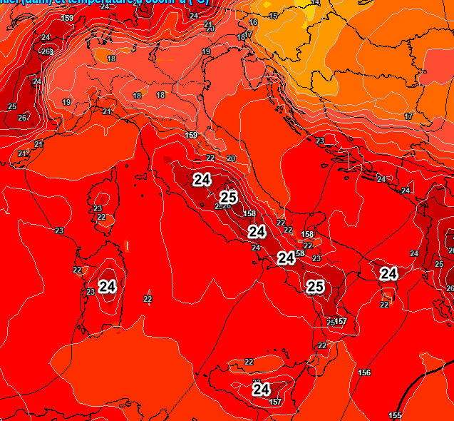 Avere temperature oltre i 25° alla medesima quota significa che il riscontro termico al suolo potrebbe anche superare i 40°. Tutto ciò avverrà nelle pianure interne dell’Italia centro-meridionale e sulle due Isole Maggiori, ma farà ovviamente molto caldo ovunque, con i 35° che verranno valicati in modo diffuso da nord a sud.