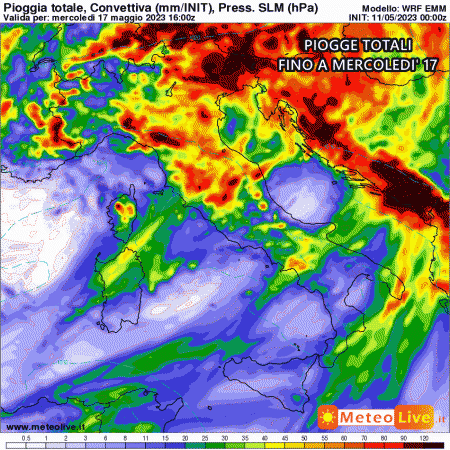 Una profonda depressione porterà prima forti piogge e nubifragi al nord e al centro, poi anche al sud. Il Meridione, nella prima fase (sabato e domenica) farà i conti coi forti venti di scirocco e col pulviscolo sahariano. Questi forti venti sciroccali, più caldi e umidi, andranno ad alimentare le forti precipitazioni che imperverseranno sul Settentrione. Gli accumuli di pioggia previsti sono ragguardevoli, decisamente anomali per il mese di Maggio su tutto il Nordest.