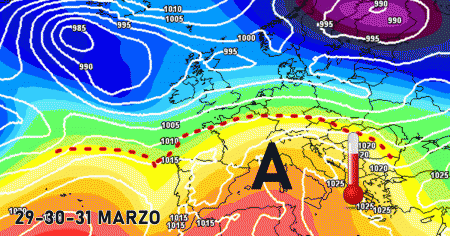 Subito dopo questa veloce fase fredda tornerà l’alta pressione con un notevole carico d’aria mite sub-tropicale marittima. Le temperature saliranno ovunque riportandosi oltre le medie su tutta Italia. Sarà un finale di Marzo stabile e mite, come visto in questo articolo.