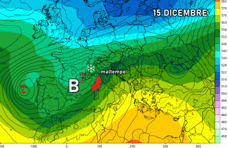 Giovedì 15 dicembre: nuova perturbazione, questa volta verso centro e nord Italia. Nevicate fino in pianura in Piemonte, Valle d’Aosta, milanese occidentale, pavese e a sprazzi su parmense e piacentino. Rischio gelicidio nei settori interni liguri e nelle conche vallive dell’Appennino emiliano.Neve a quote più alte sul nordest, maltempo al centro. Temperature in calo al nord, in aumento altrove.