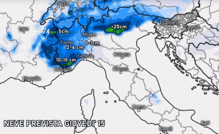 Nel corso di giovedì l’aria umida e instabile atlantica scorrerà sul cuscino freddo presente sulla pianura Padana occidentale e nelle valli, favorendo l’arrivo di nevicate di moderata entità che con buona probabilità lasceranno un piccolo accumulo nevoso al suolo! Il Piemonte è senza dubbio la regione nel mirino delle nevicate fino in pianura, ma anche Valle d’Aosta e la Lombardia occidentale (milanese occidentale e pavese) rientreranno tra le precipitazioni nevose. La linea di demarcazione tra neve e pioggia sarà davvero sottile e fra loro potrebbe inserirsi anche il temibile fenomeno del gelicidio, di cui vi abbiamo ben informato in questo articolo.
