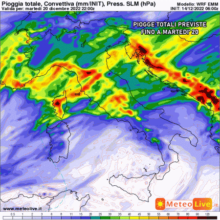 Venerdì 16 dicembre: maltempo diffuso al nordest, al centro e al sud. Migliora al nordovest. Quota neve oltre 900-1000 sulle Alpi nord-orientali. Temperature in aumento.