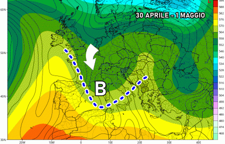 Il maltempo entrerà nel vivo nel giorno della festa dei Lavoratori, come anticipato in questo articolo. Nordovest e regioni centrali saranno il bersaglio prediletto di questa perturbazione, per cui sarà lecito attendersi forti piogge e intensi temporali, anche con grandine.
