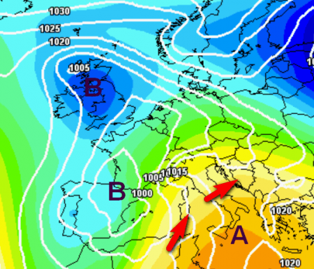 Ecco il quadro barico che porterà a questa situazione: