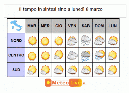 IL TEMPO in SINTESI sino a lunedì 8 marzo: