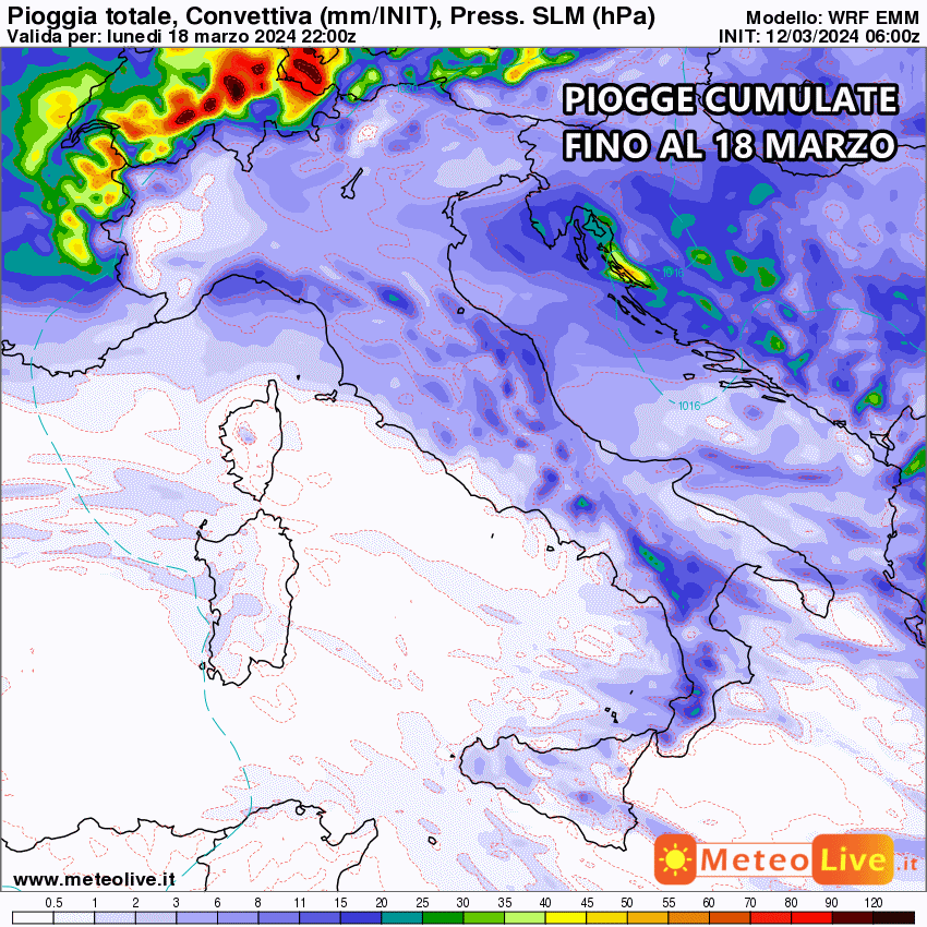 Di seguito le piogge cumulate fino al 18 marzo: