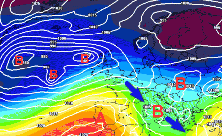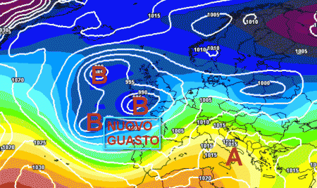 Ecco le correnti relativamente fredde da nord-ovest che faranno fuggire i fenomeni verso il meridione e parte del centro, sotto la spinta di una zona anticiclonica presente in sede iberica.