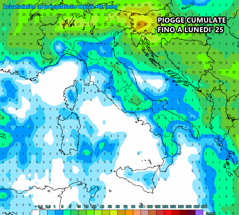 Di seguito le piogge cumulate fino al 25 marzo: