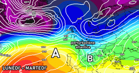La prima perturbazione arriverà tra sabato e domenica ma sarà abbastanza rapida e debole, mentre la seconda si rivelerà nettamente più incisiva ed estesa ad inizio prossima settimana (ve ne abbiamo parlato in modo approfondito in questo articolo).