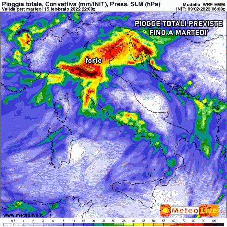 Martedì 15 febbraio: maltempo diffuso su gran parte d’Italia, specie al nord-est e al sud. Migliora al nordovest.