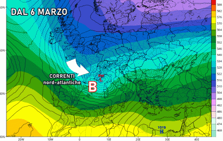 Lunedì 6 marzo: nuovo guasto a cominciare dal nord e dal centro Italia per l’avvicinarsi di correnti più umide e instabili occidentali. Ritornano le perturbazioni atlantiche! Temperature in aumento.