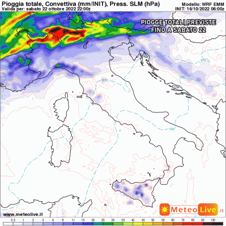 Sabato 22 ottobre: fenomeni sparsi e deboli al nordovest, specie sui monti. Stabile sul resto d’Italia con cieli poco nuvolosi e clima gradevole.
