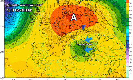 Al momento è più probabile che l’obiettivo principale siano il sud ed il basso Adriatico tra sabato 12 e domenica 13: la retrogressione potrebbe dar luogo a piogge ed acquazzoni sparsi, mentre la neve scenderebbe a quote alte in Appennino (generalmente oltre i 1200 metri). Successivamente la goccia fredda potrebbe dirigersi ad ovest/nord-ovest, ovvero verso Sardegna e nord Italia, tra il termine di domenica e l’inizio della prossima settimana. Tuttavia, come già specificato, le incertezze sono ancora elevate su questa evoluzione.