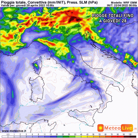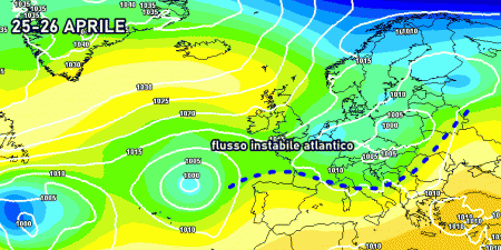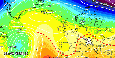 Sabato 23 aprile: altro forte peggioramento al nord a causa di un’altra perturbazione atlantica. Piogge a tratti intense al nordovest, entro sera fenomeni in estensione a Veneto, Trentino, Emilia Romagna, Toscana. Stabile al sud. Temperature in aumento.