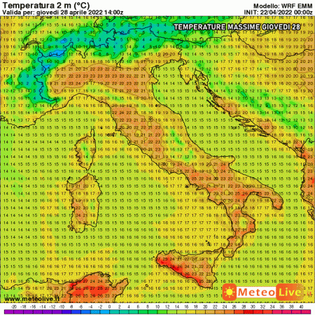 Giovedì 28 aprile: anticiclone e tempo stabile ovunque, temperature in ulteriore aumento.