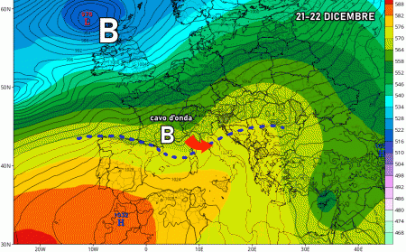 In questo mare di alta pressione, che con alta probabilità ci accompagnerà fino a lunedì 26, giorno di Santo Stefano, ci sarà spazio solo per una brevissima perturbazione atlantica tra 21 e 22 dicembre, la quale porterà deboli piogge dapprima al nord e poi anche al centro e al sud. Il tutto, però, si consumerà in poche ore.