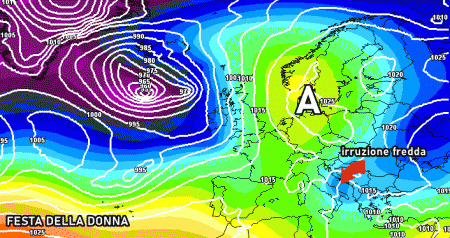 L’aria fredda artico-continentale continuerà ad affluire nel Mediterraneo anche ad inizio settimana, con picco massimo proprio durante la festa della donna, quando è atteso l’ingresso di un nucleo freddo e soprattutto instabile al sud e sul medio-basso Adriatico.
