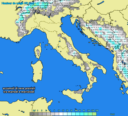 Grazie al forte calo termico (fino a 10°C sotto le medie del periodo!) tornerà nuovamente la neve a bassissima quota sul medio-basso Adriatico. Addirittura i fiocchi di neve potranno raggiungere i 100-200 metri su Abruzzo, Molise e Puglia centro-settentrionale, specie tra martedì sera e le prime ore di mercoledì. Accumuli di neve previsti in collina e sull’Appennino centro-meridionale (anche 10 cm oltre 1000 metri).