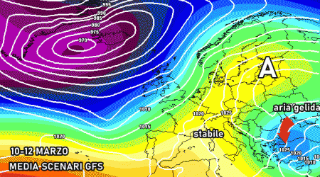 La seconda parte della settimana, invece, potrebbe rivelarsi via via più stabile ma molto fredda, ancora dominata dai freddi venti di tramontana (al sud e sul medio-basso Adriatico). Il tutto, però, potrebbe svolgersi con cieli sereni o poco nuvolosi. Dunque le ipotesi paventate nei giorni scorsi, riguardo una forte ondata di gelo tra 10 e 12 marzo, stanno rapidamente scendendo.