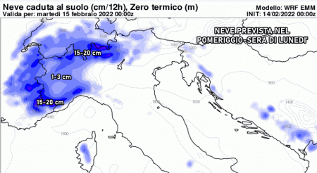 Martedì 15 febbraio: maltempo che persiste al nord e si estende al resto d’Italia. Nevicate in montagna, fino in alta collina sul nordest. Fiocchi bagnati in pianura possibili sull’Emilia occidentale. Temperature in calo.