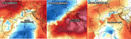 Il maltempo abbandonerà l’Italia solo nelle prime ore di giovedì, per poi lasciar spazio all’anticiclone delle Azzorre alimentato da aria tropicale marittima molto mite alle medio-alte quote: sarà proprio questa massa d’aria a far impennare le temperature tra giovedì 17 e domenica 20, in particolare sulle regioni centrali e meridionali.