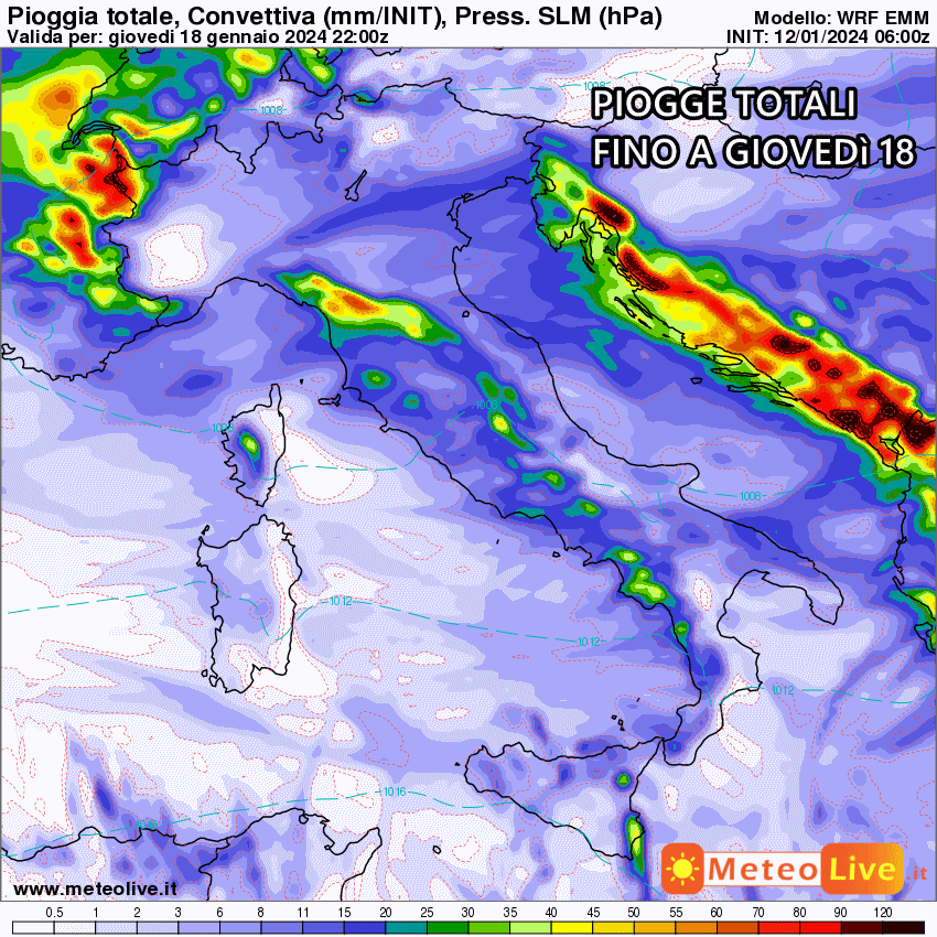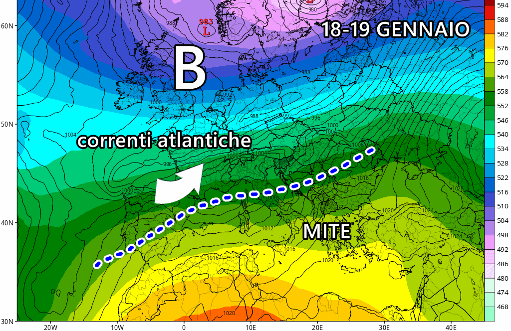 Giovedì 18 gennaio: possibile nuovo peggioramento al nord e lato tirrenico, possibili fiocchi di neve a bassa quota al nord (da confermare). Temperature in netto aumento su centro e sud.