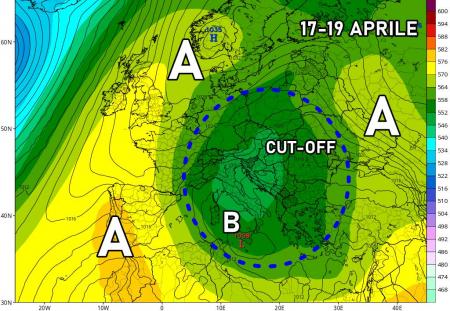 Sarà molto breve la rimonta mite arrivata subito dopo Pasquetta. L’attuale parvenza di piena Primavera sarà spazzata via da una serie di perturbazioni nord-atlantiche che, una dopo l’altra, attraverseranno il Mediterraneo. E per finire le correnti fredde nord-atlantiche si isoleranno sull’Italia ad inizio prossima settimana, prolungando di parecchio il periodo di instabilità.