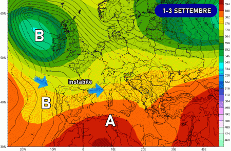 L’avvio di settembre potrebbe rivelarsi molto instabile al nord e al centro a causa di nuove infiltrazioni dall’Atlantico, le quali garantirebbero la presenza di acquazzoni e temporali diffusi. Solo al sud vedremmo una situazione migliore ed anche temperature più alte.