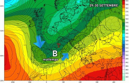 Giovedì 29 settembre: possibile nuovo intenso peggioramento sulle regioni tirreniche per un’altra perturbazione nord Atlantica. Fenomeni anche al nordest. Temperature in calo ovunque.