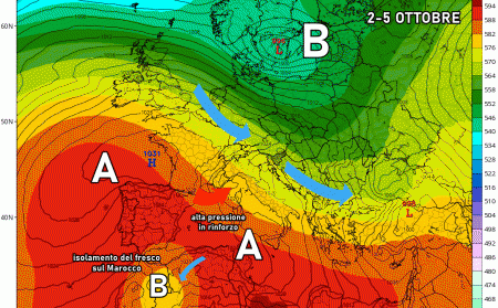 Con l’avvio di ottobre è probabile un lento rinforzo dell’anticiclone delle Azzorre, come anticipato in questo articolo. L’alta pressione porterà maggiori condizioni di stabilità da nord a sud, eccetto qualche rapido rovescio sulle regioni adriatiche innescati da infiltrazioni fresche balcaniche.