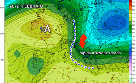 Questa dinamica favorirebbe una maggior possibilità di ondate di freddo (al momento marginali) verso le regioni adriatiche e il sud. Insomma nell’ultima settimana di febbraio potremmo tornare a percepire temperature più consone all’inverno.