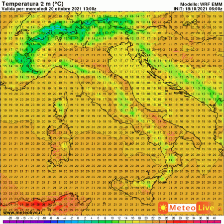 Dalle nostre mappe si osservano le temperature massime della giornata di mercoledì: