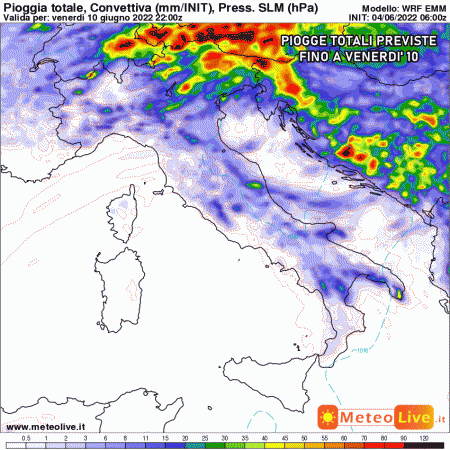 Domenica 5 giugno: poche variazioni, ancora predominante anticiclone africano al centro e al sud. Nord ai margini, pertanto possibilità di temporali pomeridiani e serali sulle Alpi e a sprazzi sulle pianure a nord del Po.