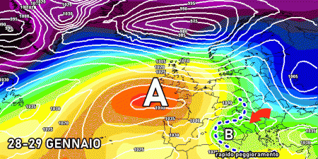 Mentre si consumano gli ultimi effetti dell’aria gelida arrivata dai Balcani sulle regioni meridionali e del medio-basso Adriatico, proviamo a spostare l’attenzione al prosieguo di settimana e alla fine di gennaio, periodo molto famoso tra i non addetti ai lavori per essere il periodo più freddo dell’anno.