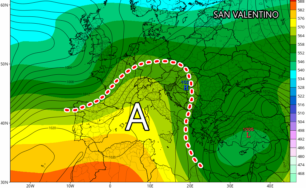 Ad inizio prossima settimana ci sarà un lieve calo termico grazie ai venti da nord-ovest, ma saremo ben lontani dal vero inverno. Addirittura tornerà l’anticiclone da San Valentino, come ormai ipotizzato da tutti i centri di calcolo.