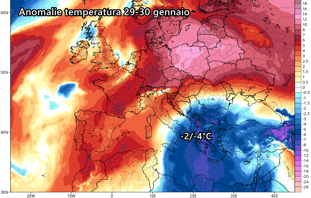Le regioni meridionali sperimenteranno condizioni più tipicamente invernali, grazie a correnti fredde che provengono dai Balcani, in un contesto meteorologico generalmente secco e con scarse precipitazioni. Durante i giorni della Merla, le temperature scenderanno al di sotto delle medie stagionali in tutto il Sud Italia. Invece, le regioni del medio-alto Tirreno, la Sardegna e il Nord Italia avranno temperature leggermente più elevate.