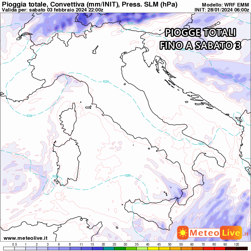 Mercoledì 31 gennaio: stabile su tutta Italia, giorni della Merla che si concludono con un forte anticiclone.