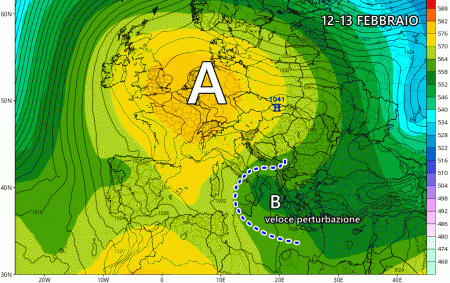 Domenica 12 febbraio: anticiclone su tutta Italia, clima rigido di notte e all’alba, più gradevole di giorno. In serata possibile blando peggioramento al sud per l’arrivo di un fronte dai Balcani.