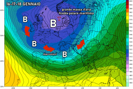 È tutto pronto per l’avvio di un lungo periodo più freddo e molto perturbato ad opera delle correnti artiche, assolutamente mancate nelle prime settimane dell’inverno. La stagione fredda entrerà nel vivo a partire da lunedì quando un vasta massa d’aria fredda polare marittima si fionderà sull’Europa centrale e si affaccerà anche sul Mediterraneo.