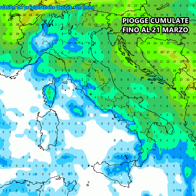 Di seguito le piogge cumulate fino al 21 marzo: