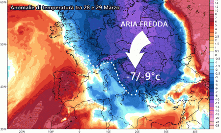 La prima parte della prossima settimana sarà nettamente più fredda! Forti venti da nord traghetteranno aria molto fredda artica che farà precipitare le temperature fin sotto le medie del periodo di parecchi gradi (ve ne abbiamo parlato qui).