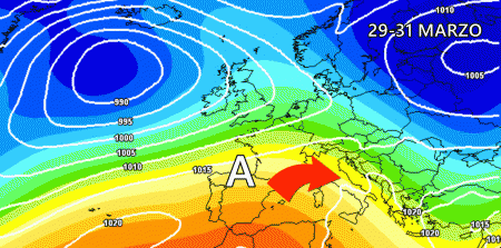 A partire proprio da mercoledì mattina le temperature torneranno a crescere inevitabilmente grazie alla ripresa dell’alta pressione da ovest, che ci regalerà un finale di Marzo più stabile e molto più mite specie al sud.