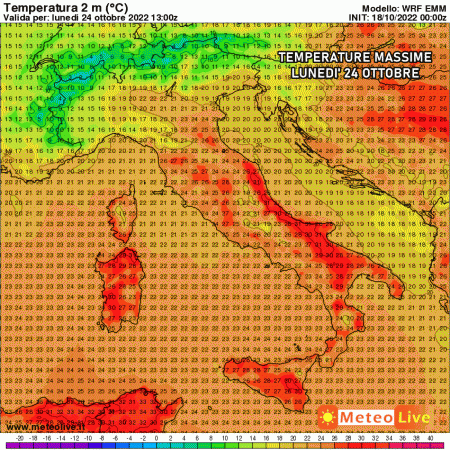 Martedì 25 ottobre: caldo anomalo al sud con picchi di 30-31°C. Nubi e instabilità al nord e medio-alto Tirreno.